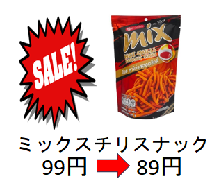 🍘 ミックススナック:99円 ➝ 89円